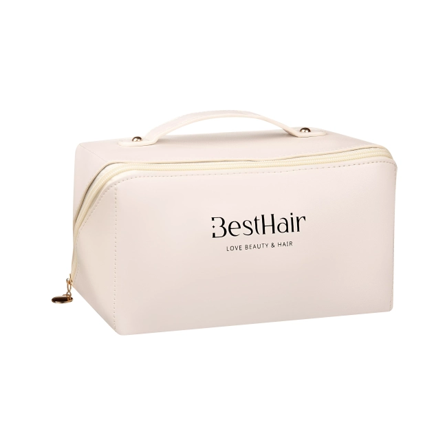 Ekskluzywna i przygotowana specjalnie na prośby naszych klientów, skórzana kosmetyczka z logo naszej marki BestHair. Twój totalny must have do domu i w podróży.